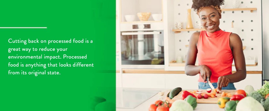 İşlenmiş gıdaları kesmek, çevresel etkinizi azaltmanın harika bir yoludur. İşlenmiş gıda, orijinal durumundan farklı görünen bir şeydir. Birçok yiyecek bu kategoriye girer. İşlenmiş gıdalar bakkaldaki çoğu ürün içerir.