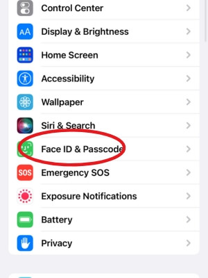 - Passcode veya Face ID kullanarak iPhone'un kilidini açın