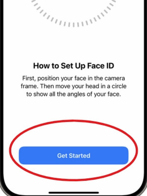 - Cihazınızı portre oryantasyonunda tutun, yüzünüzü cihazınızın önüne yerleştirin, ardından Başlayın'a dokunun