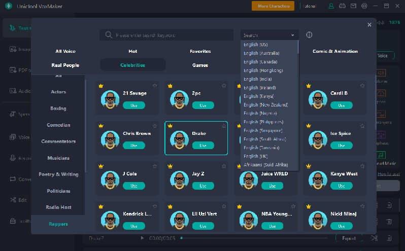 Hepsi Bir Arada Ses Araç Seti: Kullanıcılar aşağıdaki gibi işlevlerden yararlanabilirler:metne konuşma,görüntüden konuşmaya,AI ses klonlama,sesten konuşmayave bir ses kaydedici olarak ses kayıtlarınızı kaydetmenize, düzenlemenize ve dönüştürmenize olanak tanır.