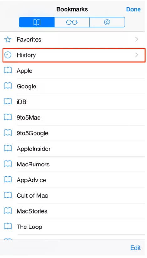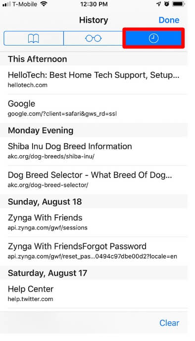 - 3. Safari'de tüm arama geçmişinizi görmek için geçmiş menüsüne dokunun.