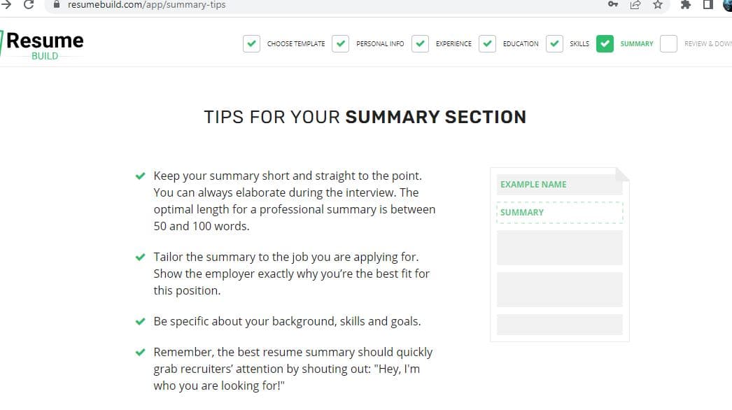 - Ve son olarak, özgeçmişinizi ücretsiz olarak gözden geçirmek ve indirmek için özgeçmişi ile ücretsiz bir hesap oluşturmanız gerekir.