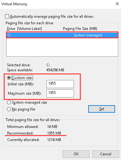 - GitGelişmişSekme ve tıklayınDeğiştirmekSanal bellek bölümünde.