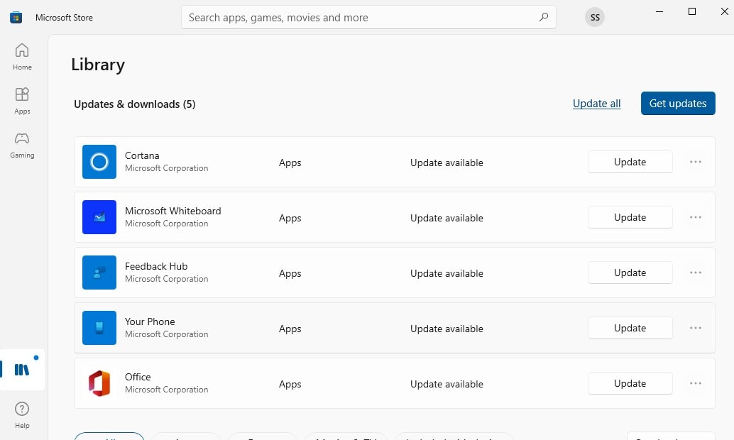 Microsoft Store'dan indirilen ve yüklenen uygulamaları güncellemek için: