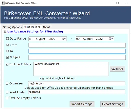 - Bu araç içerirtoplu dönüşümBirden çok klasör ve alt klasörlere sahip .eml dosyaları.