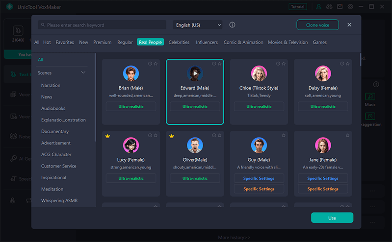 Bu uygulama, cinsiyet, yaş, etnik köken ve lehçelere göre değişen yüzün üzerinde sesle önceden yüklenmiş olarak gelir, bu yüzden sesinize mükemmel bir şekilde uyan bir şey olacak.