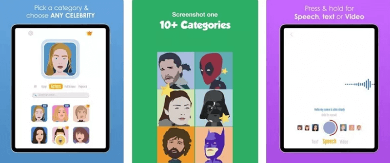 - Çok çeşitli ünlüler ve avatarların sesi sunar.