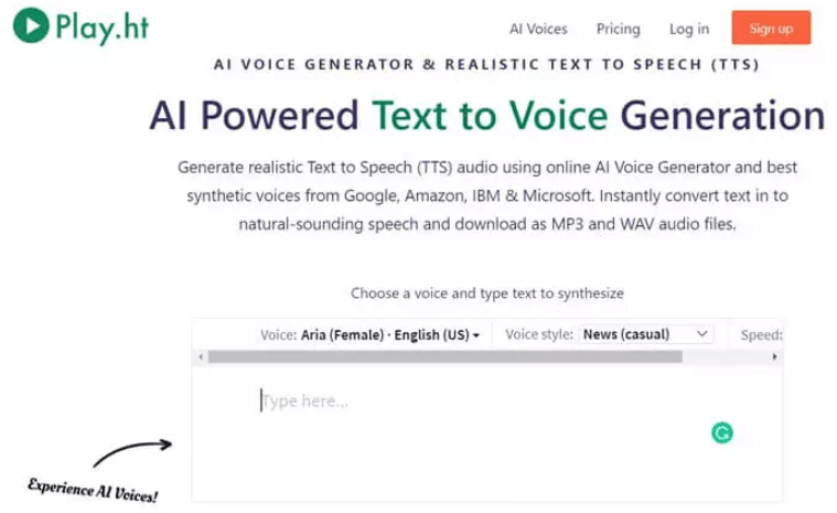 Play.ht, olağanüstü ve doğal ses içeriği üretmek için gerekli araçları sunan çevrimiçi bir yapay zeka ses oluşturucusudur. Bu metinden konuşmaya ses değiştirici, sürekli güncellemeler nedeniyle iyi bilinmektedir.