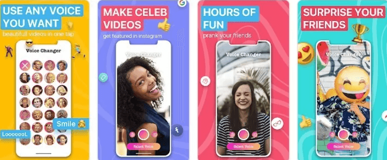 - Voicer, birkaç dokunuşla sesinizi ünlü bir kişinin sesine dönüştürmek için ünlülerin ve karakter seslerinin önceden ayarlanmış büyük bir kütüphanesini sunar. Arkadaşlarınıza şaka yapmaya hazır olun.