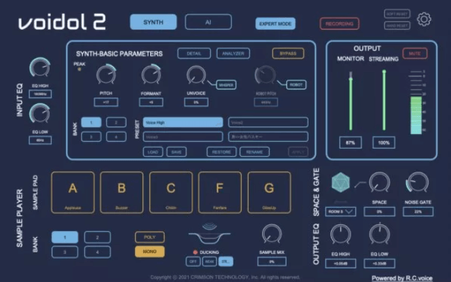 Voildol2, popüler yapay zeka gerçek zamanlı ses oluşturucuya özel bir eklentidir. Bu güçlü yazılım sürekli olarak güncellenir ve synth modu gibi daha fazla özellik ekler. Voildol2, sesi otomatik olarak ayarlaması gereken iş profesyonelleri ve içerik yaratıcıları için idealdir.