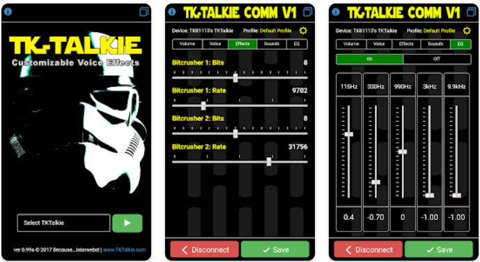 Buses değiştiricistormtrooper kaskıonline, ses dosyasını yükleyebileceğiniz veya metinden konuşmayı oluşturmak için dahili mikrofonu kullanabileceğiniz basit bir arayüze sahiptir. Özelleştirilmiş bir ses filtresinin yanı sıra, uzaylılar, yılanlar, askerler, sincaplar, erkekler, dişiler vb. gibi halihazırda sağlanan birkaç ses efekti vardır. Özellikleri şunları içerir: