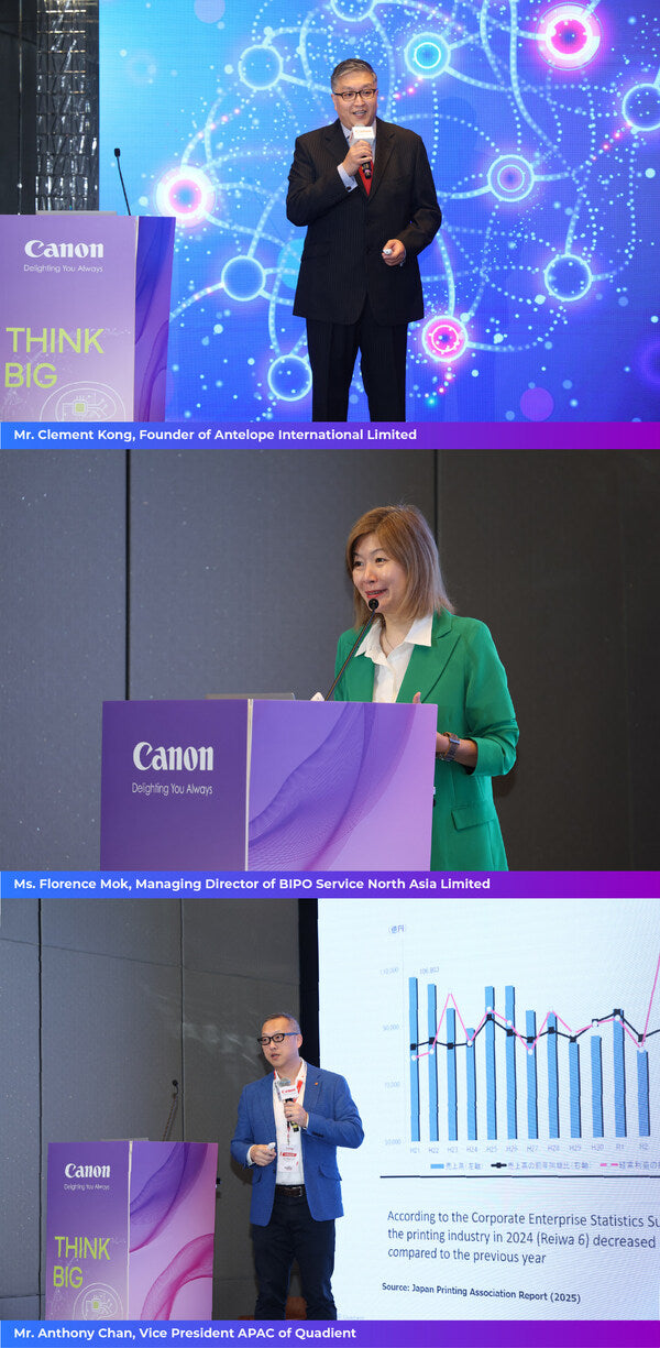 Canon Hong Kong'un başkanı ve CEO'su Gary Lee, açılış konuşmasını yaptı ve Canon'un yeniliği benimsemek ve daha otomatik, optimize edilmiş ve yenilikçi bir geleceğe dönüşümü hızlandırmak için Canon'un en son iş çözümlerinden yararlanmak için vizyonunu paylaştı.