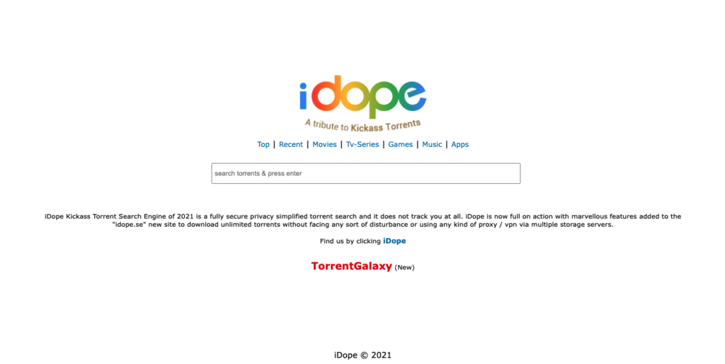 Torrentfunk gibi, Idope de kaliteli torrentler için harika bir kaynaktı. Ancak, bu siteden kaçınmak en iyisidir. Son yıllarda orijinal site indirildi ve müdahaleci reklamlar ve bağlantı istemleriyle dolu bir sürümle değiştirildi.