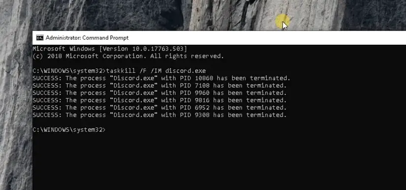 - Tip KomutTaskKill /f /im discord.exeEnter tuşuna basın,
