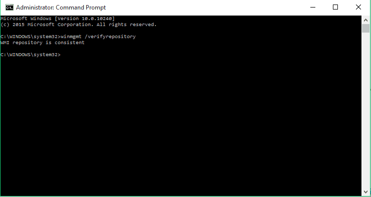 - Winmgmt /verifyrepository komutunu yazın ve enter tuşuna basın,