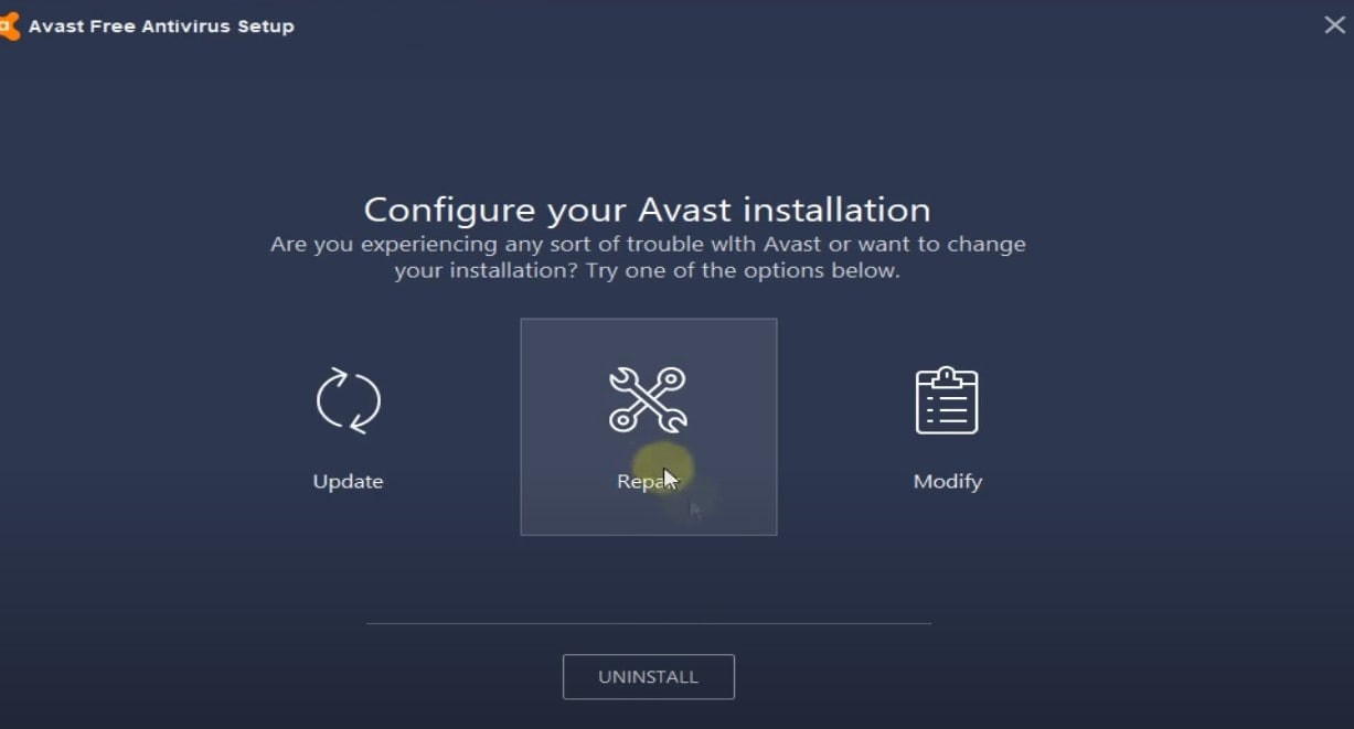 Avast uygulamasını Windows 11'de açamıyorsanız dosyalarının eksik veya bozuk olması ihtimali vardır. Avast antivirüsünü onarmak muhtemelen sorunu çözmek için iyi bir çözümdür.