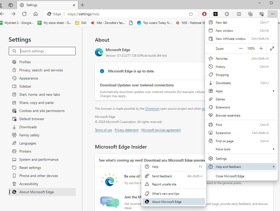 - Menü (…) → Yardım ve geri bildirim → Microsoft Edge Hakkında'yı açın.