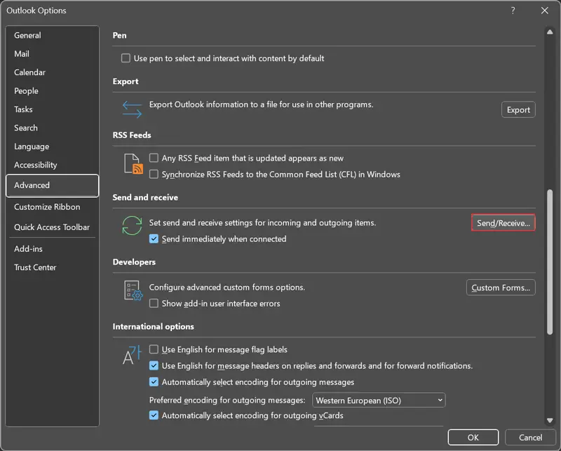 2. Gelişmiş'e basın ve Gönder/Al seçeneğine dokunun.