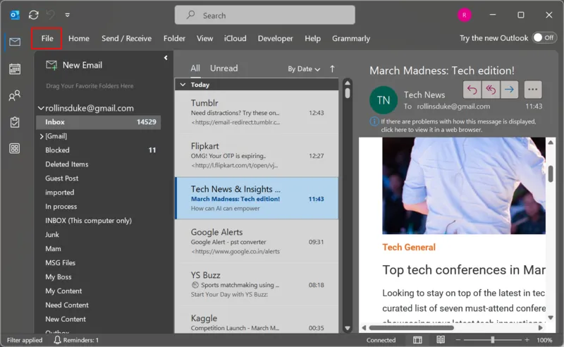 - Şimdi Outlook'u açın ve dosyayı tıklayın.