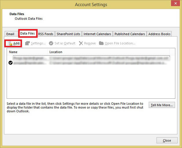 - Ardından, veri dosyalarını tıklayın ve OST dosyalarınızı seçin.