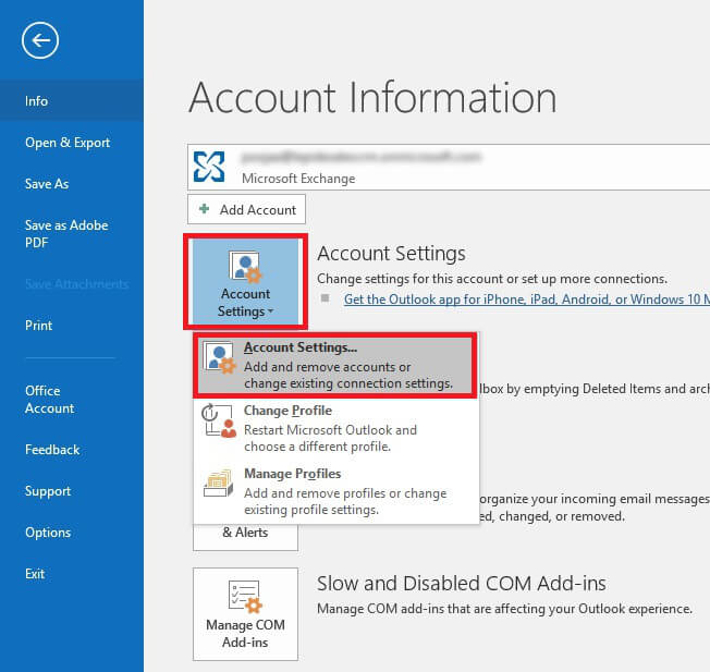 - İlk olarak, Outlook'u açın ve hesap ayarlarına gidin.