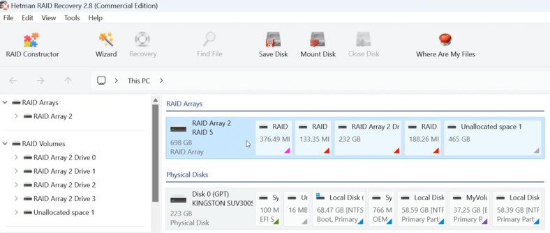 - Hasarlı RAID dizilerinden veri kurtarma için tasarlanmış özel yazılım. Bu kılavuz için programı kullanacağızHetman Raid Kurtarma.