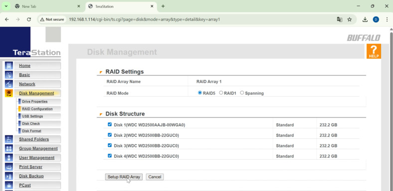 Buffalo HD-H1.0TGLR5'te RAID 5 nasıl oluşturulur
