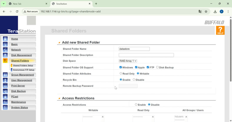 - Buffalo HD-H1.0TGLR5'te paylaşılan bir klasör nasıl oluşturulur