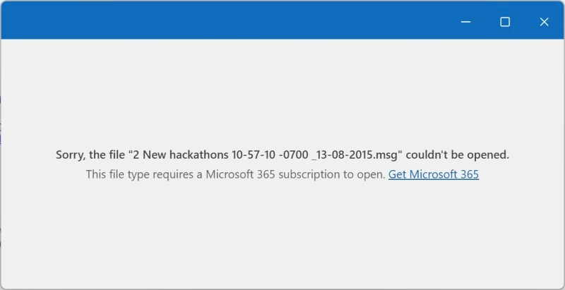 “Üzgünüm .msg dosyası açılamadı” hatası, dosyanın sahip olmadığınız etkin bir Microsoft 365 aboneliğine ihtiyaç duyduğu anlamına gelir.
