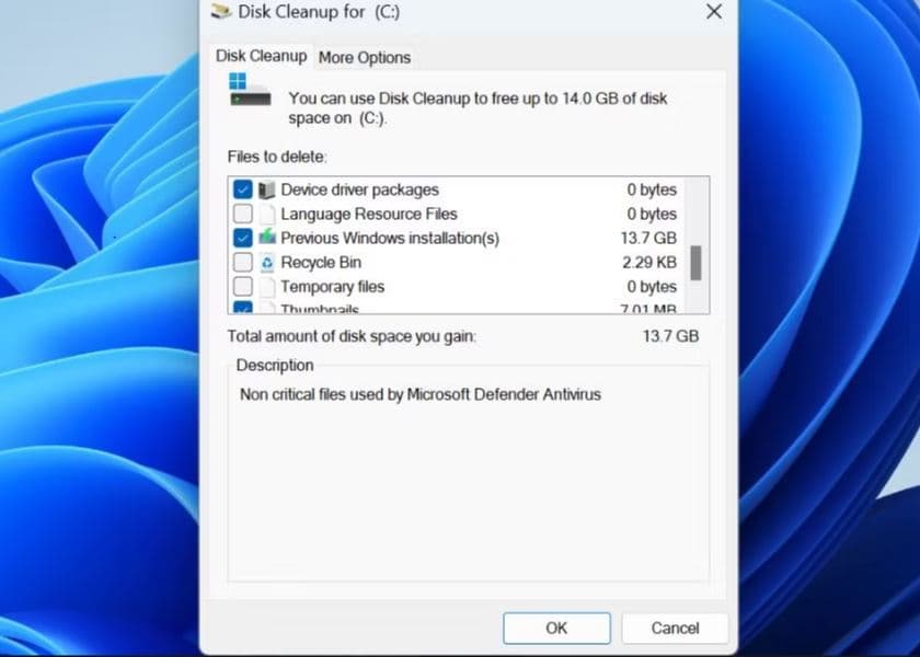 Windows.old klasörü, özellikle sisteminizde çok sayıda dosya varsa, önemli miktarda disk alanı kaplayabilir. Disk alanınız azaldıysa ve depolama alanını geri almanız gerekiyorsa,Windows.old klasörünü silindeğerli alanı başka amaçlar için boşaltabilir.