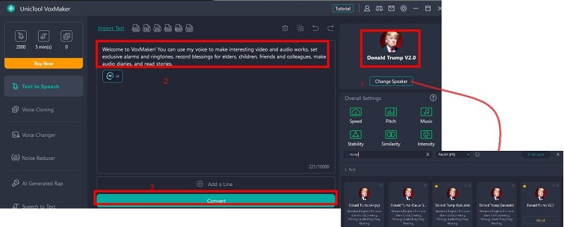 mükemmel bir araç! Unictool VoxMaker'ı kullanarak Trump'ın sesini oluşturabilir veya klonlayabilirsiniz.