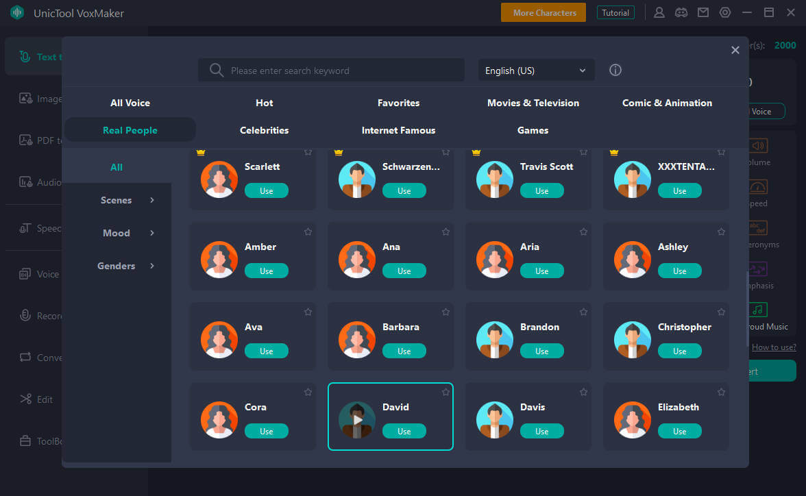 - Sesler 3200+ sağlar; Tom Hiddleston Voice'den 500'den fazla ses tahtası ve 46 dil daha fazla