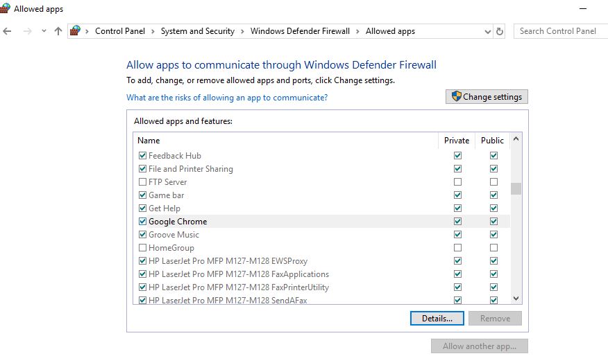 Windows Defender Güvenlik Duvarı'ndan Chrome'a izin verin