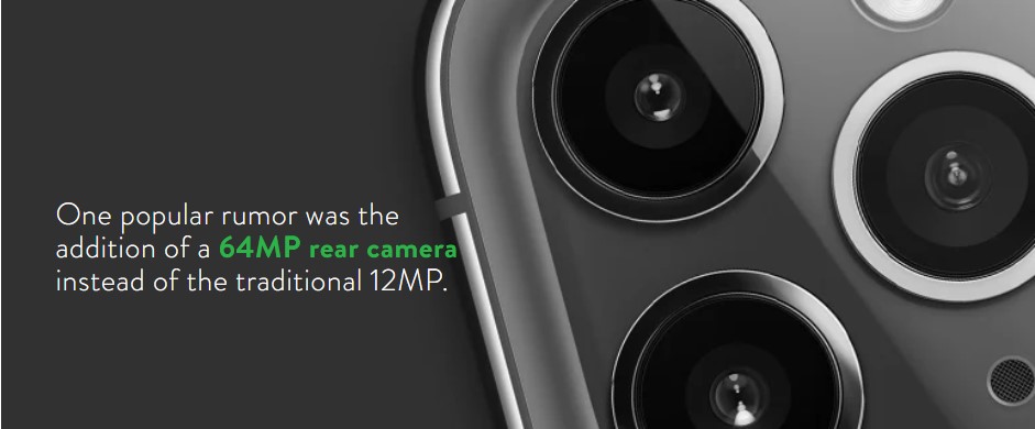 Popüler bir söylenti, geleneksel yerine 64MP arka kameranın eklenmesiydi.12MP. Forbes'a göreApple, Samsung sorunlarla mücadele ettikten sonra bu planları hurdaya çıkardı.Galaxy S20. Bu sorunlar sensörün odak piksellerinin daha düşük yoğunluğundan kaynaklanmaktadır. Apple'ın 12MP kameralarıyla başarısı göz önüne alındığında, muhtemelen daha küçük bir sensöre yapışmayı iyi idare edebilirler.