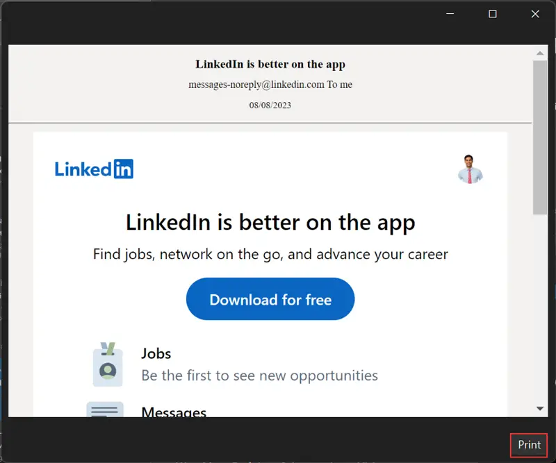 - Bir e -posta açyerel olarak indirmek istediğiniz.