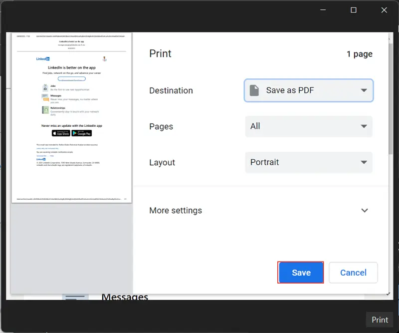 - Şimdi hedefi seçinPDF olarak kaydedinve tıklayınKaydetmek.