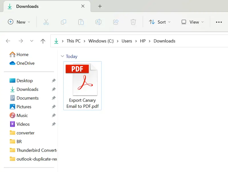 - GörmekKanarya e -postası dışa aktarıldıİndirme klasöründe.