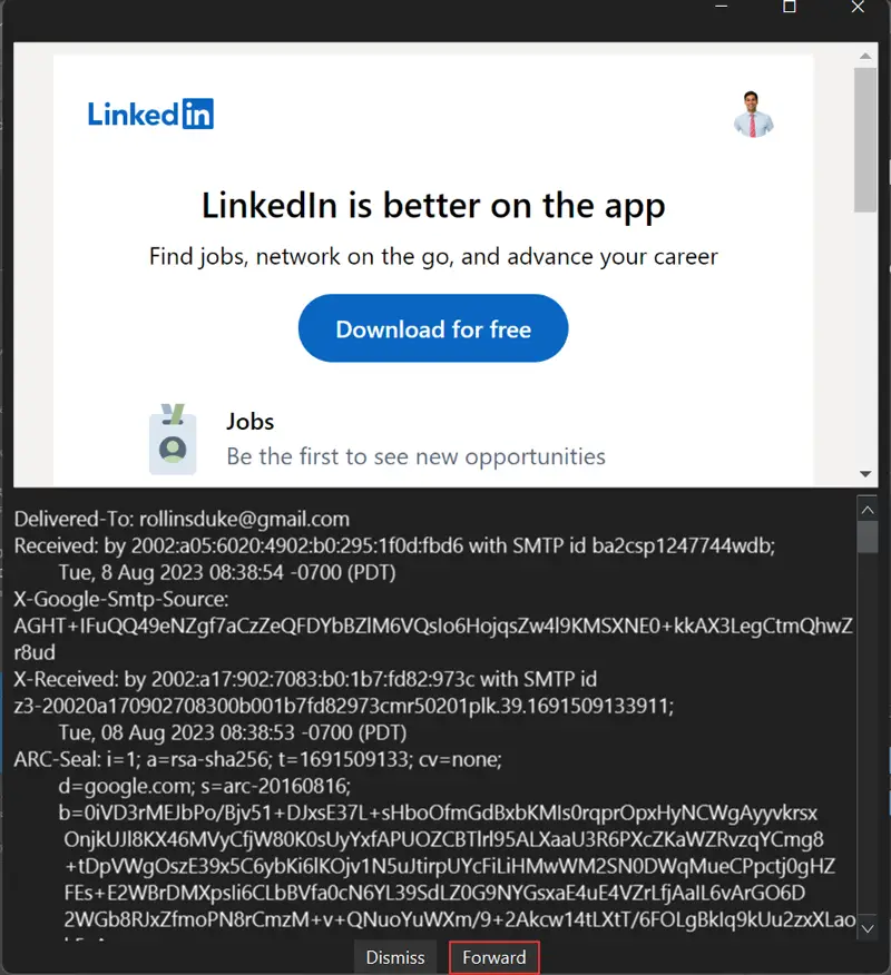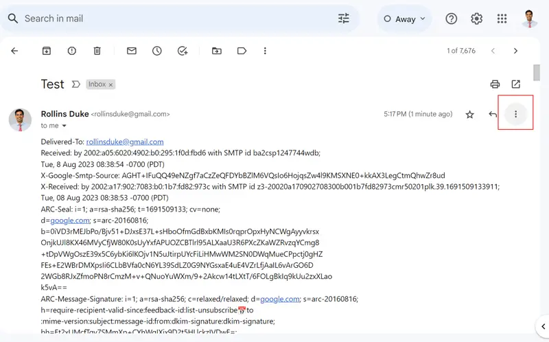 - Şimdi orijinal e -postaya bakın ve tıklayınİleri.