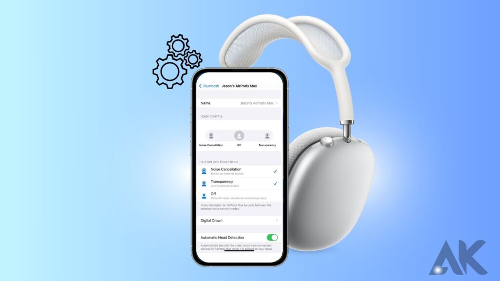 AirPods Max kullanıcıları, AirPods Max'lerini akıllı kasadan çıkararak, ayarları uygulamasına gidip Bluetooth'a dokunarak ve mevcut cihazlar arasında AirPods Max'i bularak ayarlarını özelleştirebilir. Ses Kontrolü düğmesini, otomatik kafa algılama ve dönme yönünü seçebilirler. Tüm AirPod modelleri için, kullanıcılar eşleştirme verilerini telefonlarından silmek için “Bu cihazı unut” a dokunabilir. Yanlışlıkla dokunulursa, kullanıcılar AIRPOD'larını kolayca onarabilir ve bu da onları yenileri gibi hissettirebilir.