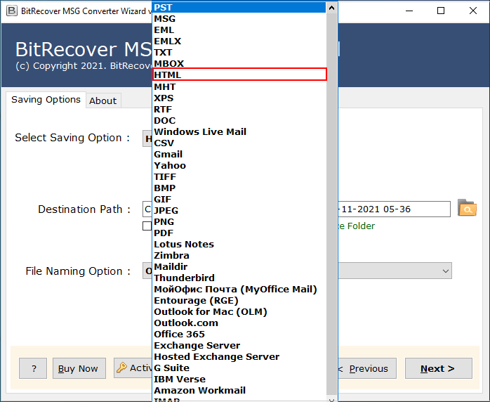 - TıklamakDönüştürmek.msg'yi .html'ye dönüştürmek için.