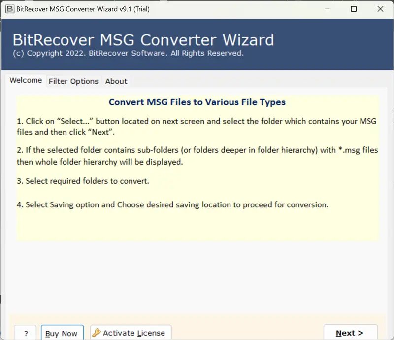 - Öncelikle başlaMSG'den MHT dönüştürücüsüneve bazı dönüşüm talimatlarını okuyun.