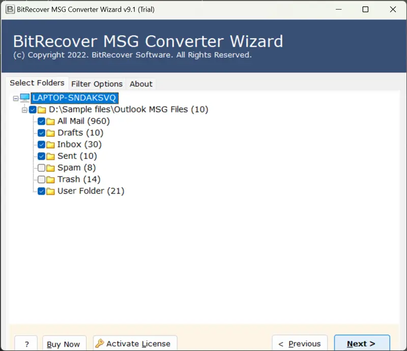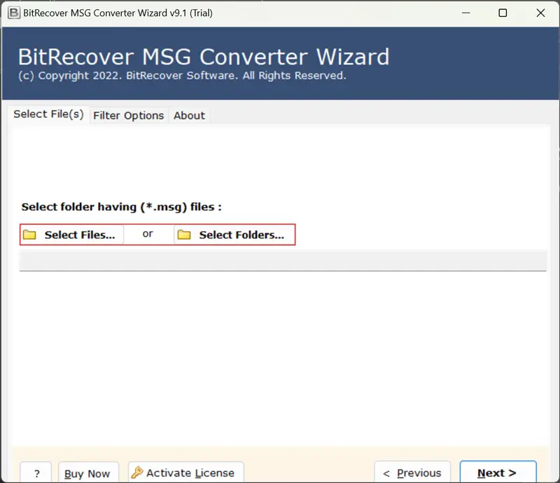 - KullanınDosyaları seçin veya klasörleri seçinGUI'ye msg dosyaları eklemek için düğme.