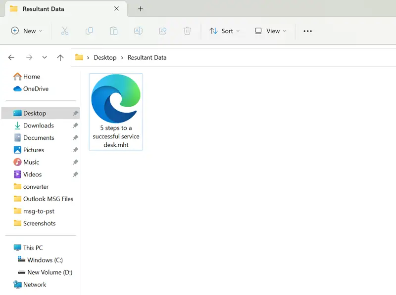 - Son olarak, araç hedef klasörü otomatik olarak açar, şimdi alabilirsinizÇıktı MHT dosyaları.