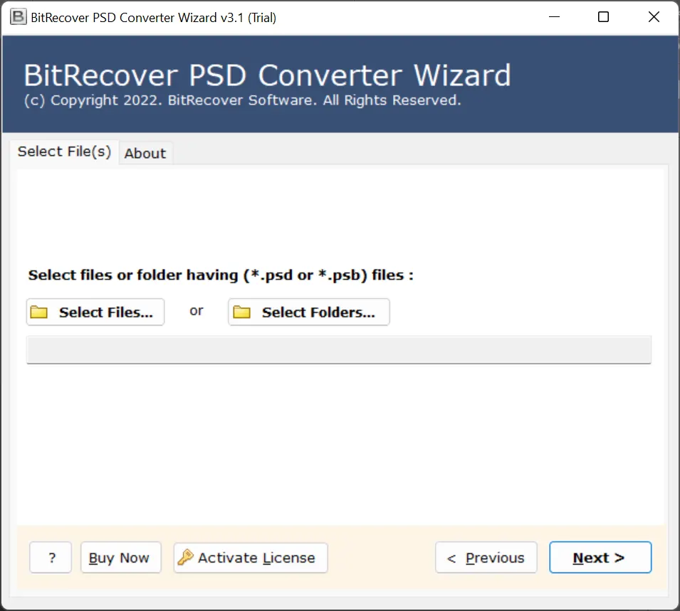 - İkinci olarak, simgesine tıklayarak PSD dosyasını seçin.Dosyaları Seçin veya Klasörleri Seçinseçenek.