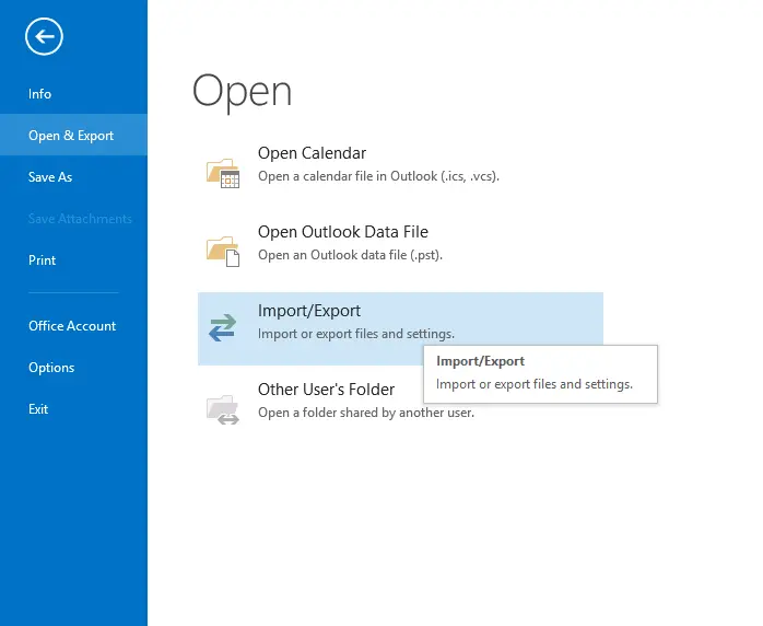 - Daha sonra seçinAç ve Dışa Aktar >> İthalat/Dışa Aktarma.
