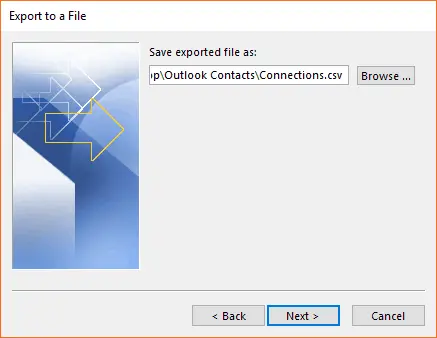 - SeçinKontaklarOutlook istemcisinden dışa aktarılacak klasör veSonraki.