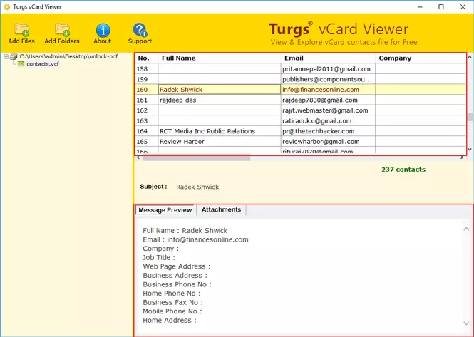 Not:Bu görevi yerine getirmek için belirtilen araç dışında,VCARD izleyici uygulamasıVCF dosyalarınızı ve VCARD Dönüştürücü uygulamasını görüntülemek için VCARD dosyalarınızı başka bir biçime dönüştürmek için. Her iki uygulama da basittir ve hem teknik hem de teknik olmayan kullanıcılar tarafından kolayca kullanılabilir.