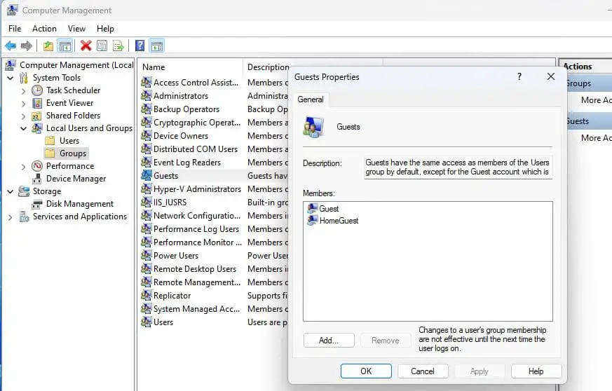 Windows 11 Konuk Hesabı Kısıtlamaları