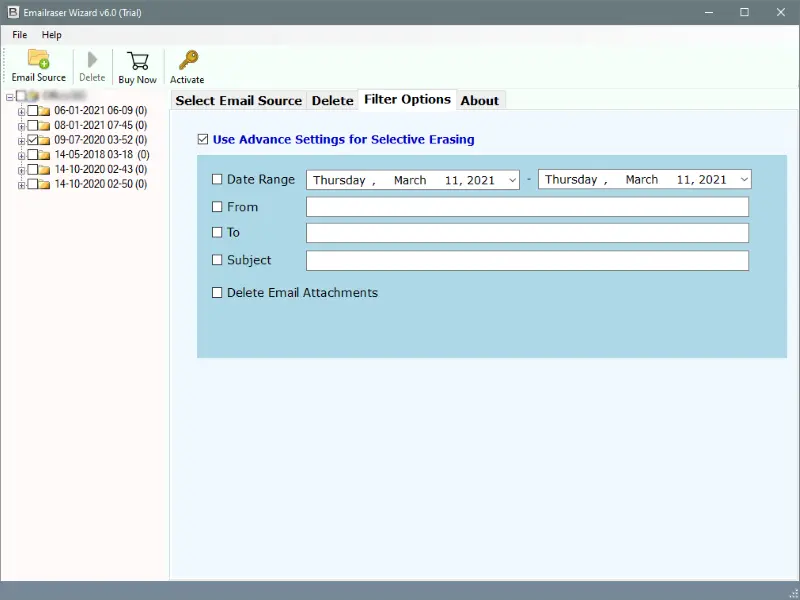 - Daha sonra,Herhangi bir filtre seçinEarthLink Webmail'den veri seçici olarak silmek istiyorsanız.
