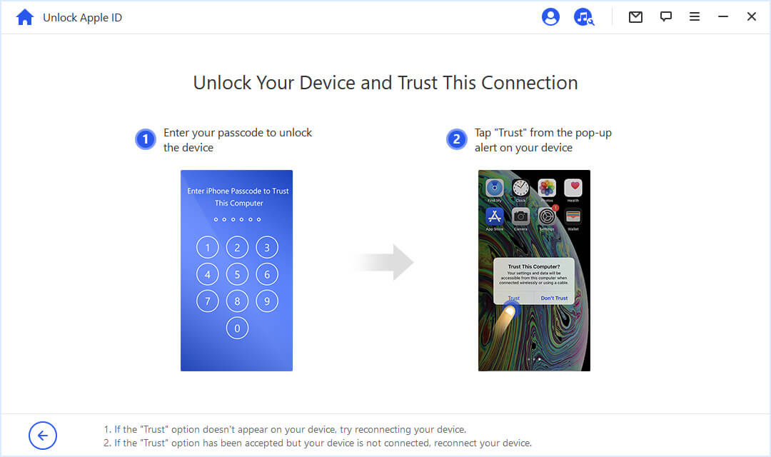 - Adım 2: “Güven”i seçin: iPhone veya iPad'inizi bilgisayarınıza bağlayın ve açın. Henüz yapmadıysanız cihaz ekranına gidin ve "Güven"i seçin.